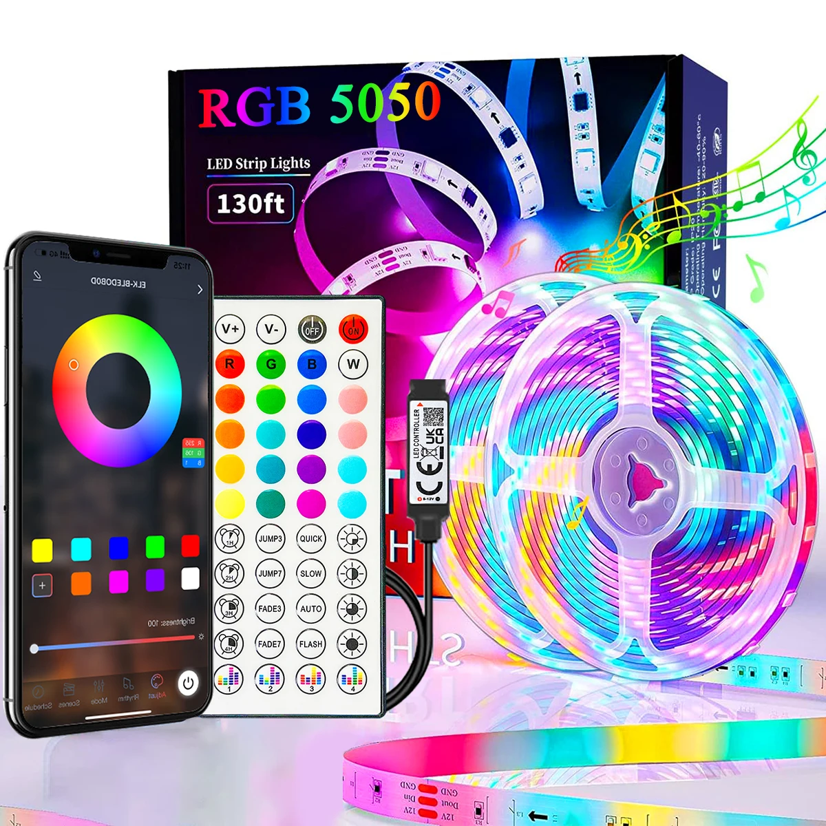 40M/131Ft LED Strip Lights APP Control Color Changing RGB Led Light Flexible Lamp Tape for Room Decoration TV Backlight Diode
